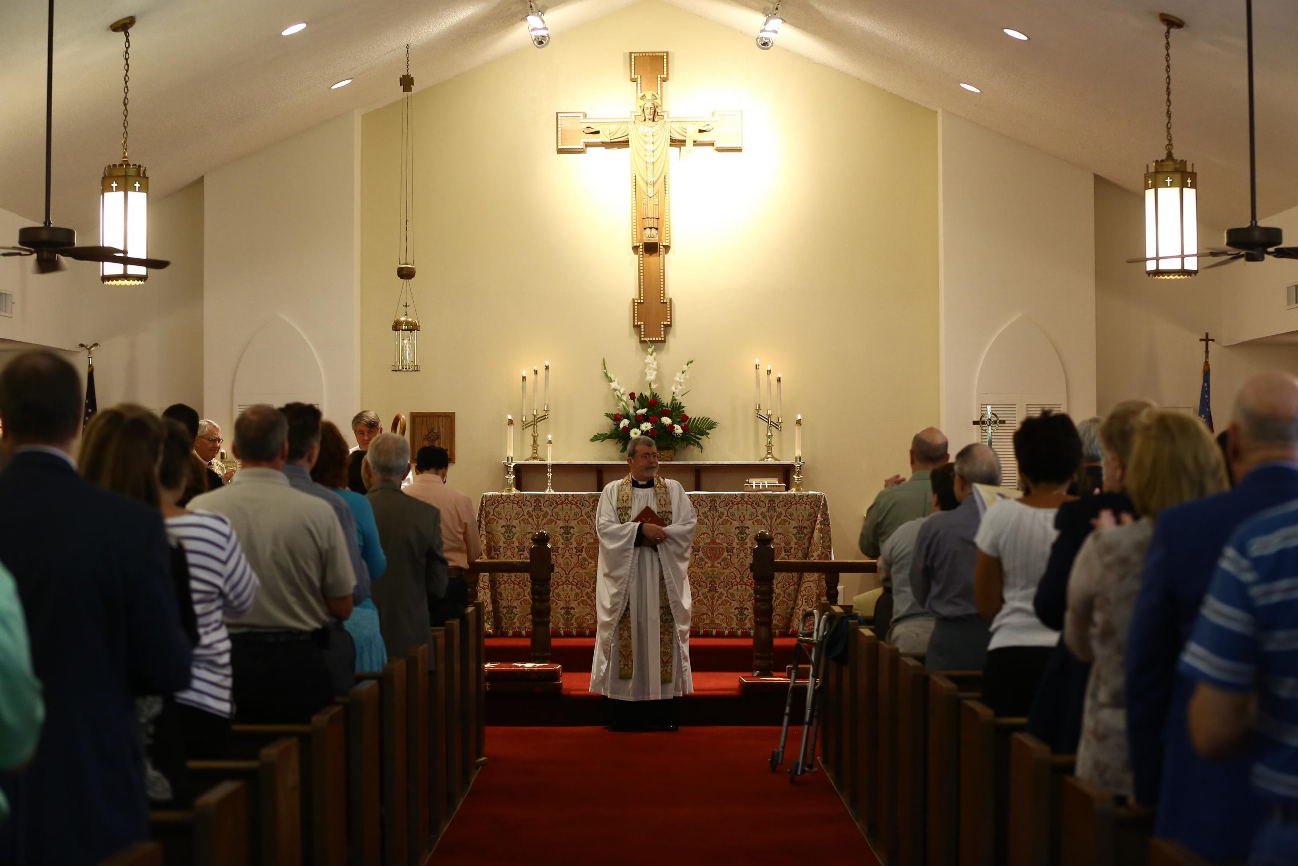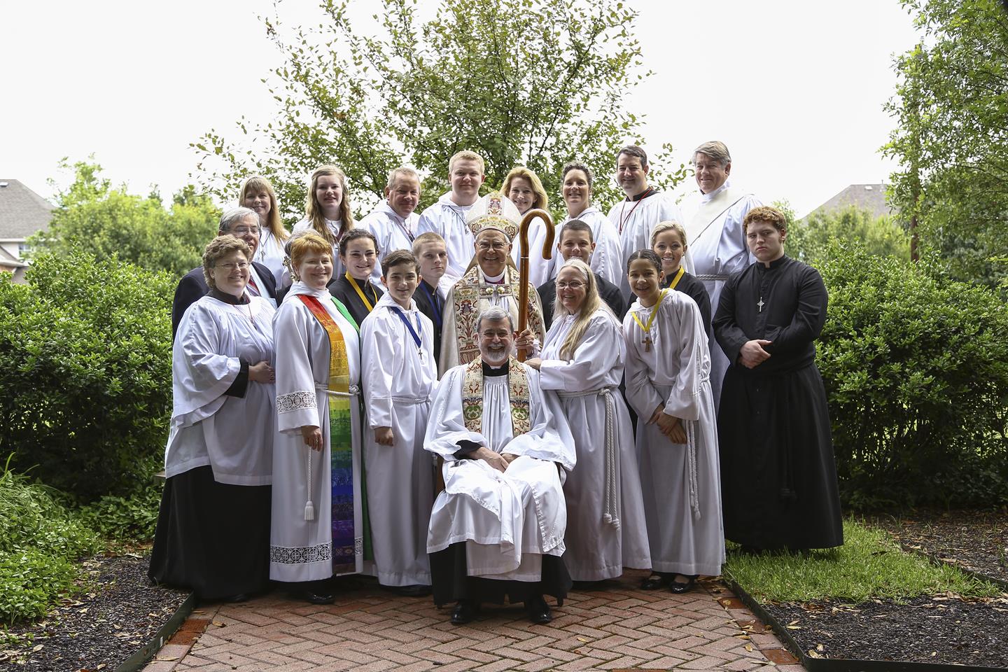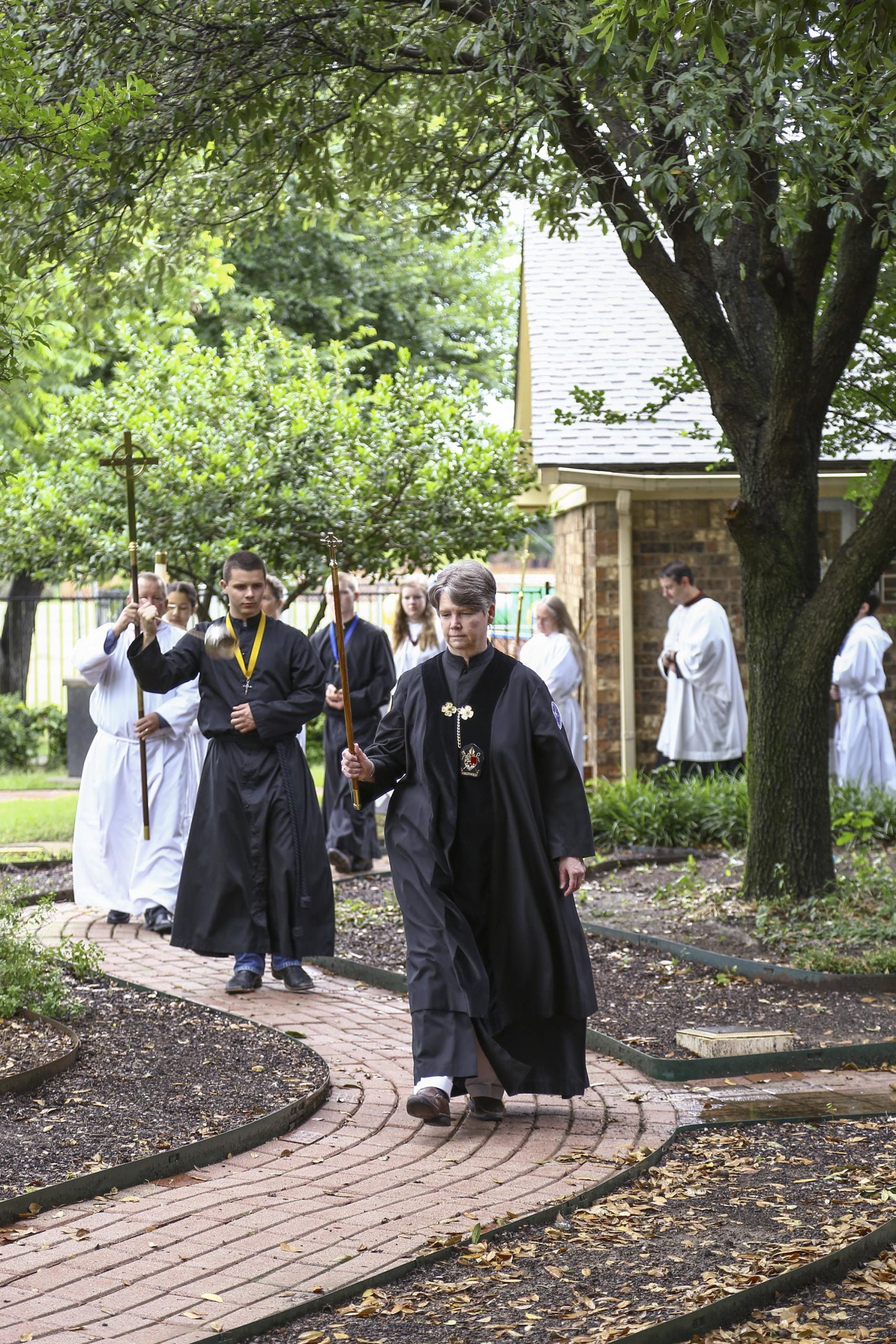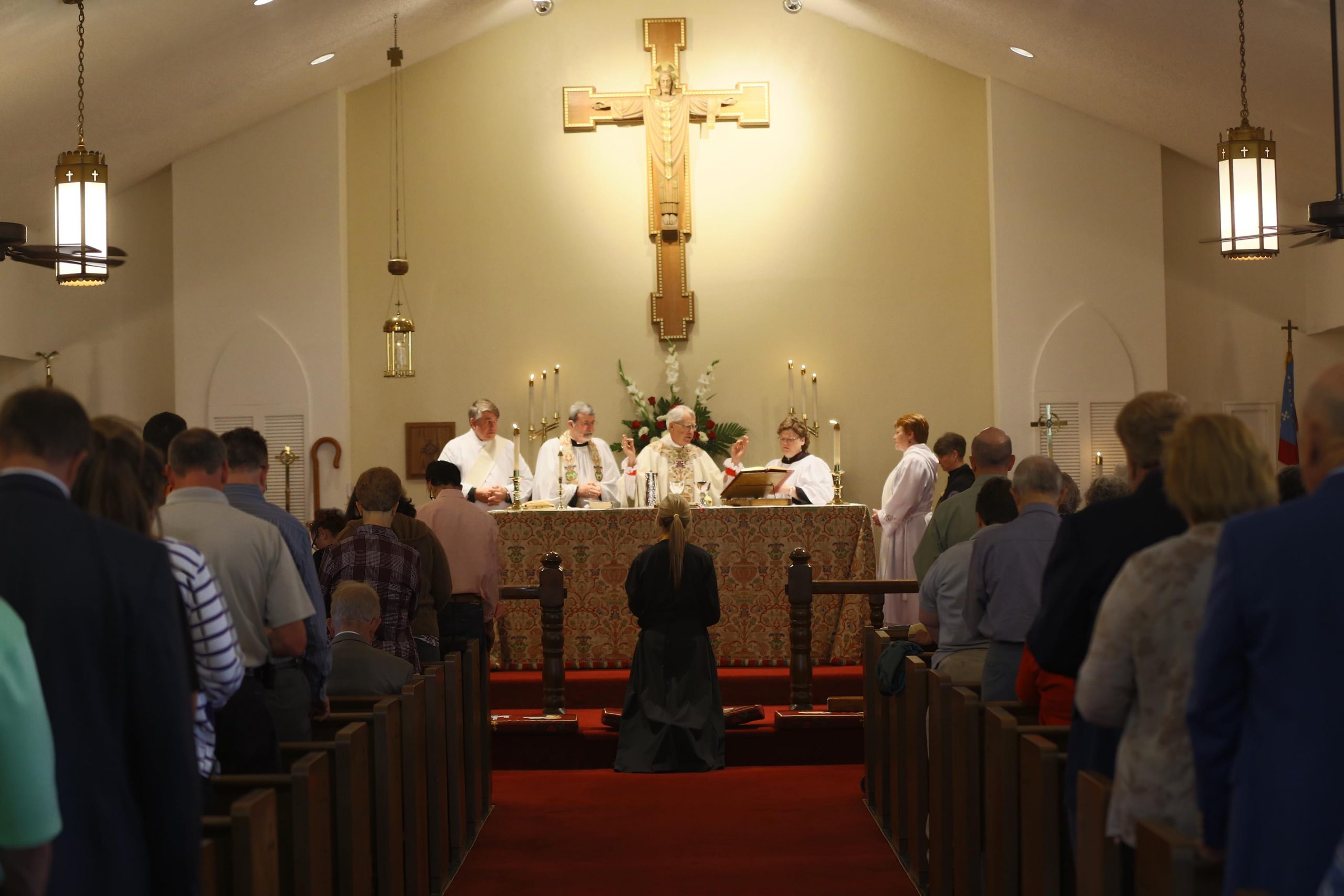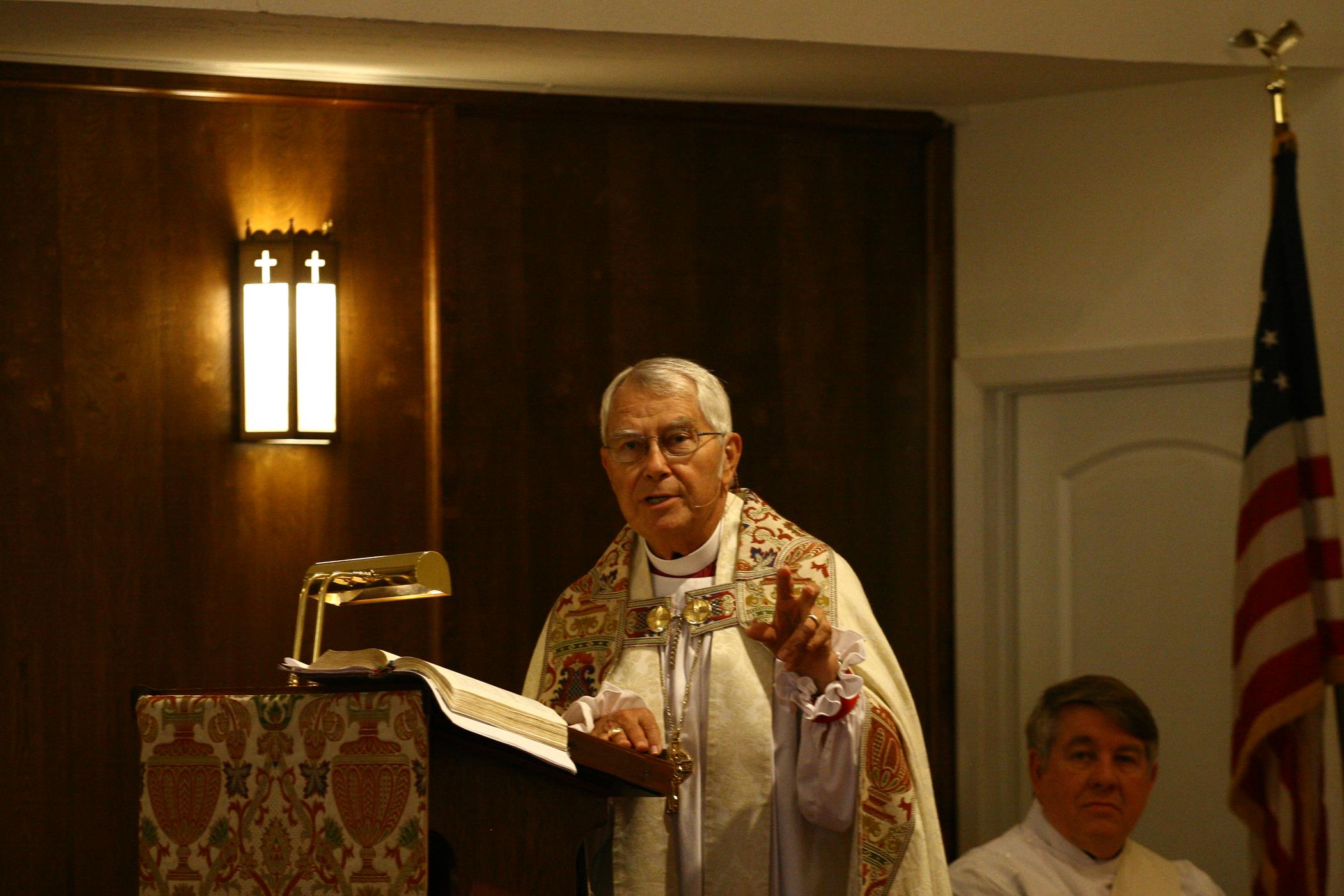 There was a procession with incense and banners and torches and crosses through the garden and into the packed church. Bishop High was present with the parish in this time of transition. In his homily, Bishop High recalled the post-communion prayer at a priest’s ordination, “We thank you for raising up among us faithful servants for the ministry of your Word and Sacraments. We pray that Jim may be to us an effective example in word and action, in love and patience, and in holiness of life.” He praised Fr. Jim for a job well done, and closed his homily with, “We celebrate the love and faithful service of Jim Reynolds at this congregation.”