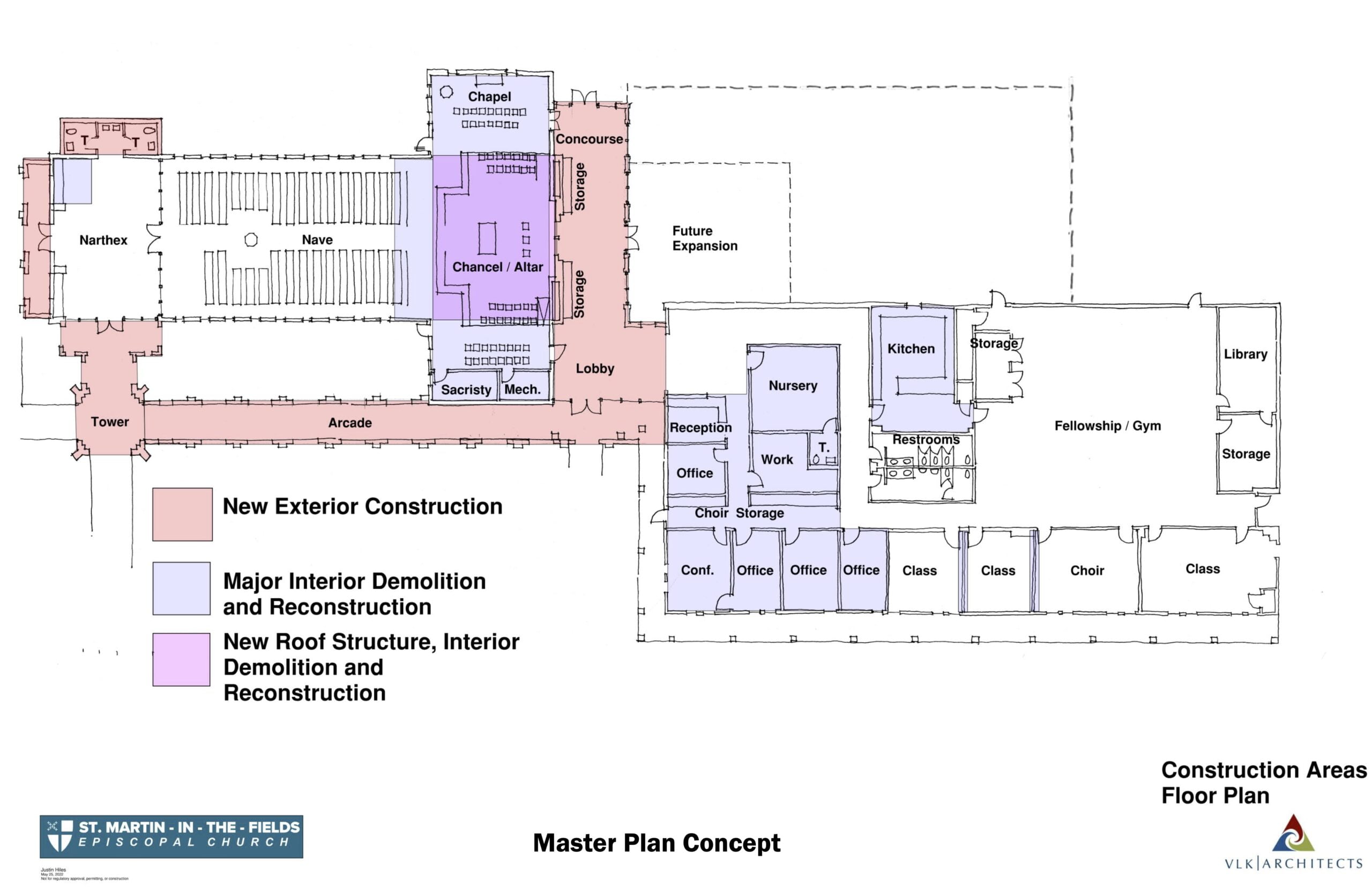 In 1999 St. Martin-in-the-Fields received approval of its revised master plan. As illustrated on the second page of the attached presentation, the plan called for the construction of a new church, an education building and a significant amount of new parking, roadways, and other improvements.